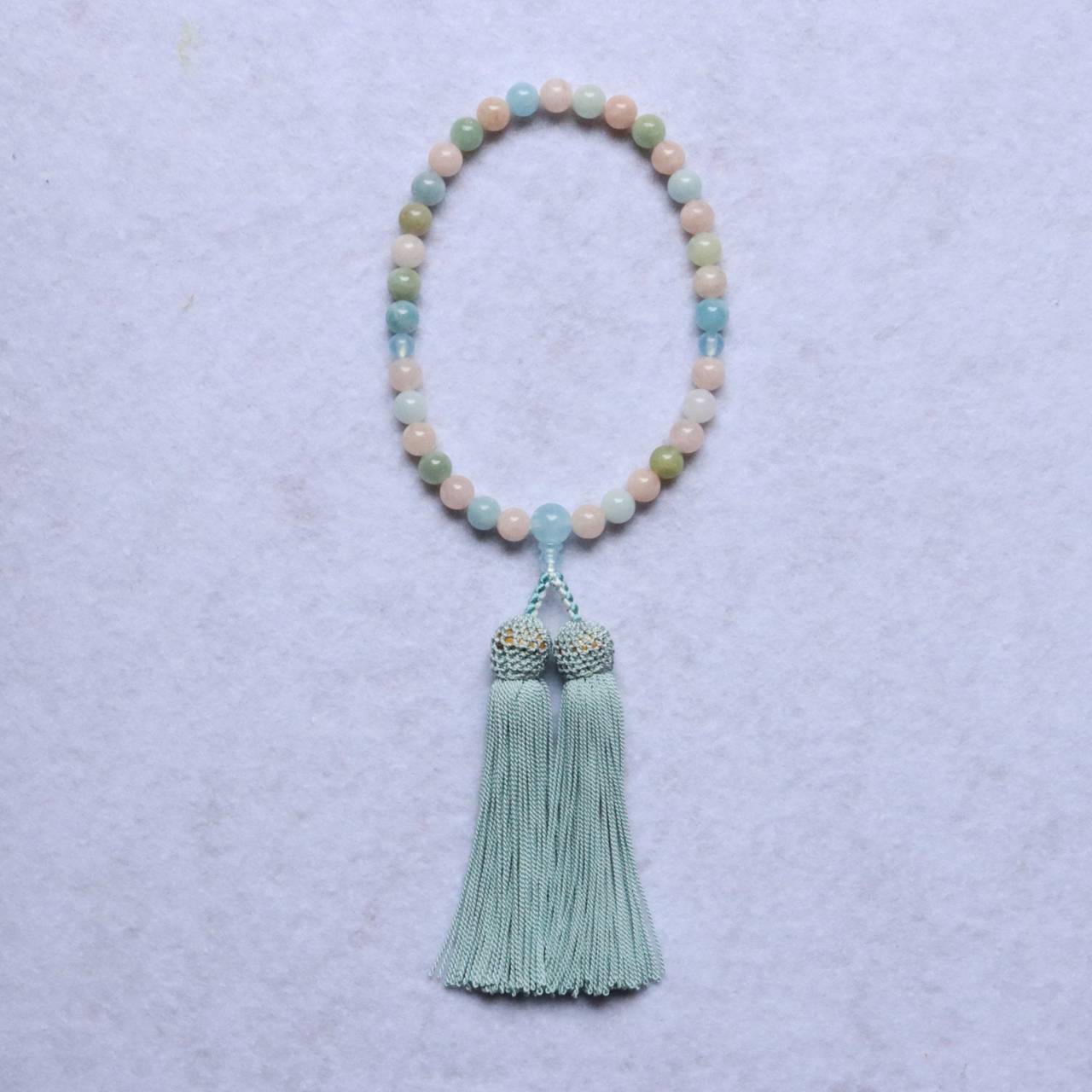 〔ミックスベリル〕天然石、アクアマリン(4A)仕立 、女性用略式念珠