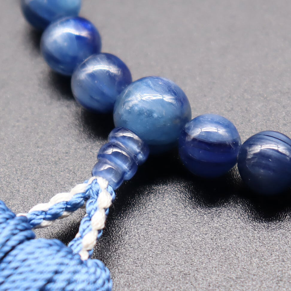 【カイヤナイト(3A)】天然石33玉 │ 共仕立 │ 正絹切房 │ 女性用略式念珠〔自社工房製作数珠〕
